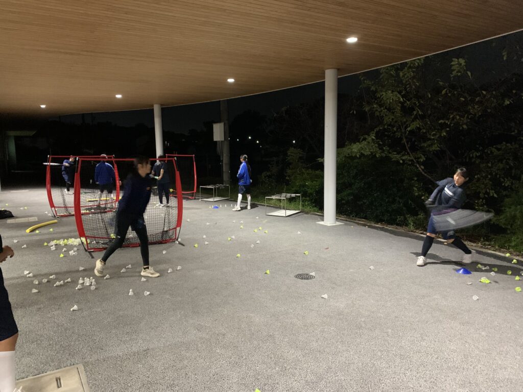 雨天のため、室内練習に切り替えて練習しました。